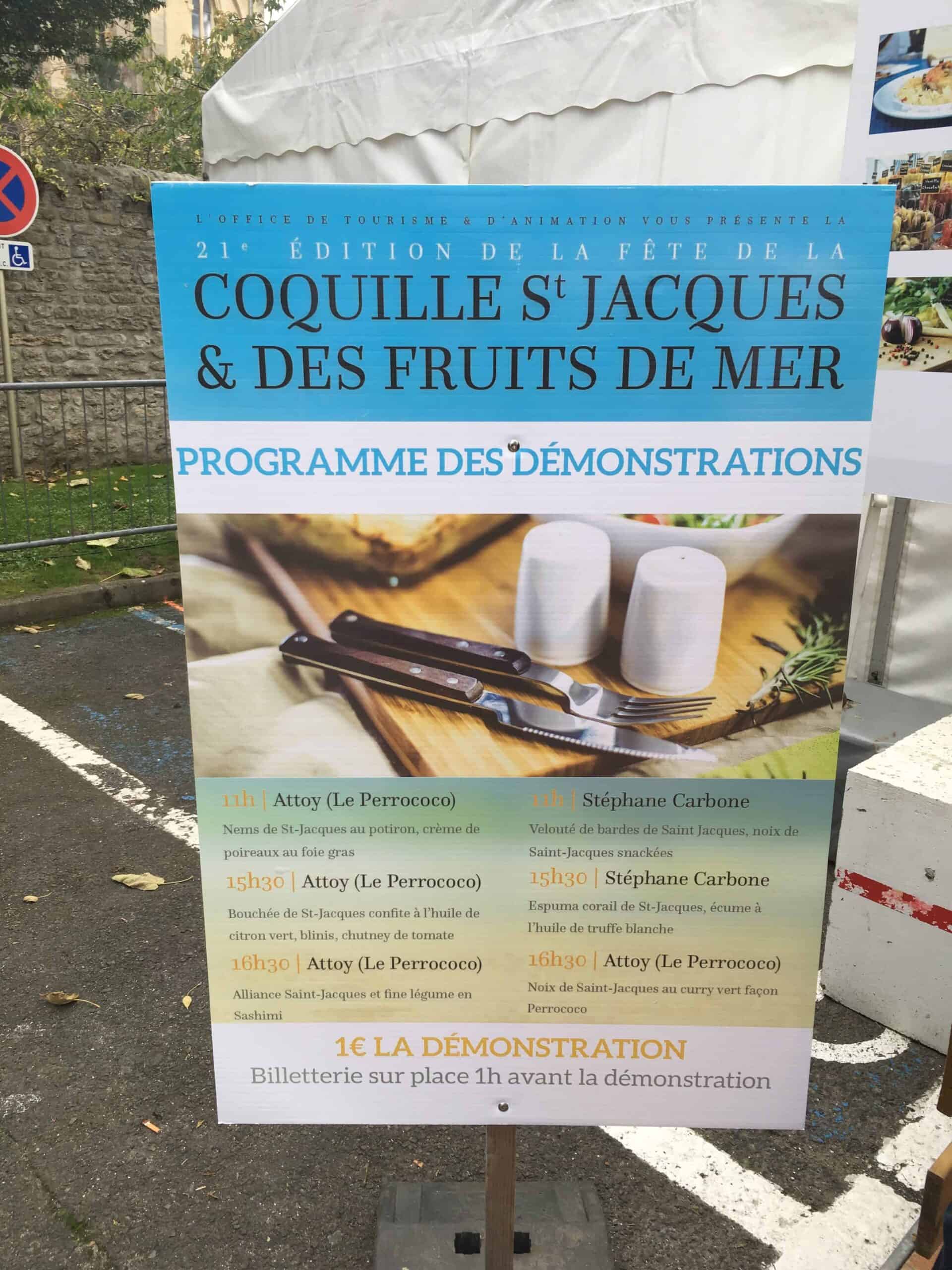 ノルマンディーは、ホタテ漁でフランス一番を誇るらしく、毎年ノルマンディー各地でホタテ祭りが行われます。今年は5都市で開催され、海の幸のお料理教室、魚の燻製デモンストレーション、船内見学や、漁師さんから直接魚を購入したりでき