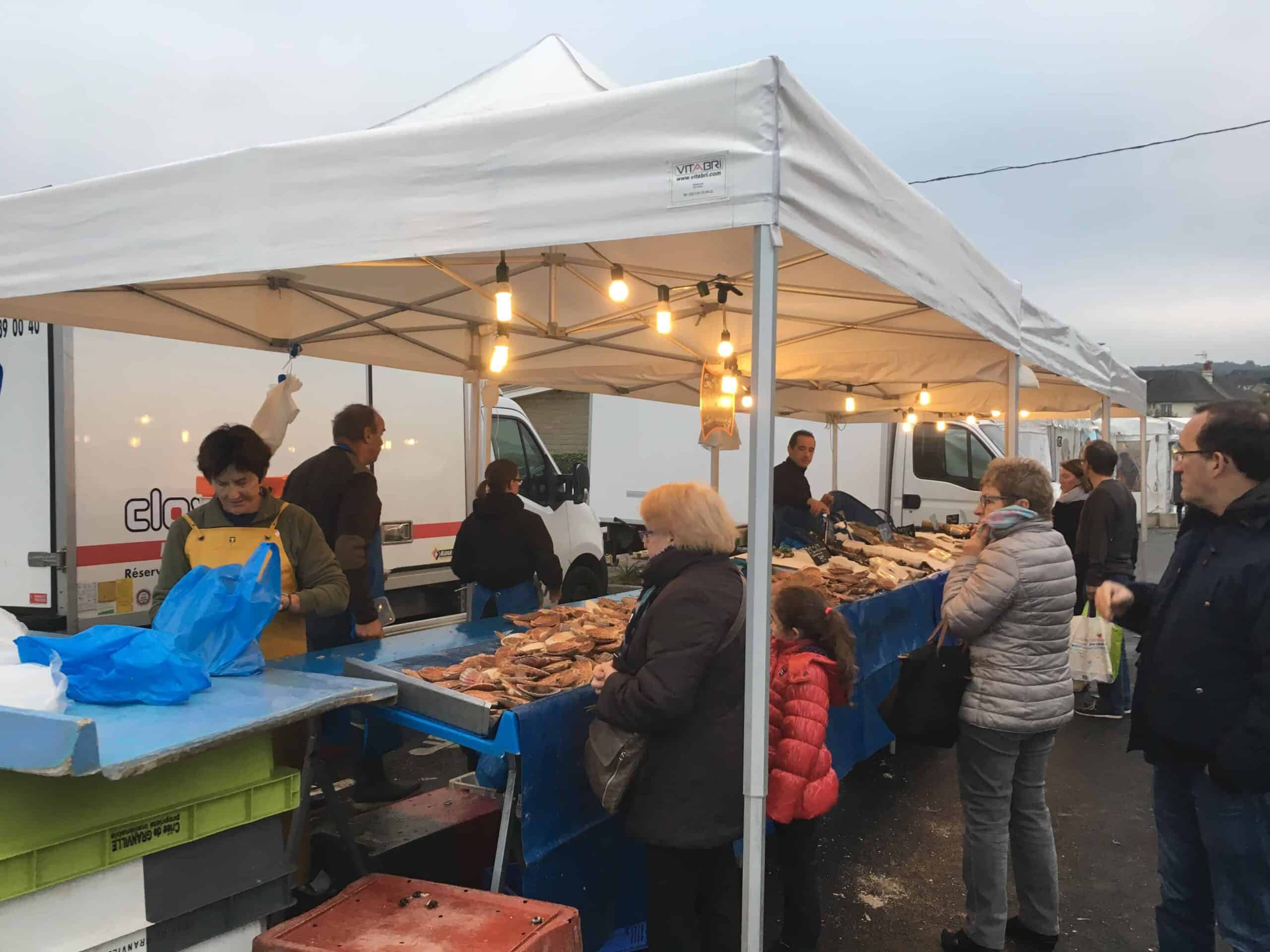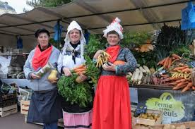 心に集まります。ノルマンディーの名産品(カマンベールやヌシャテルなどのチーズ、リンゴのお酒シードル等)から、フランス全国のもの(エスカルゴ、カスレ(豆料理)やシュークルート(アルザス地方の名産、キャベツの塩漬け料理)、地元の新鮮な野菜や果物などなど、並んでいるものは、どれだけ見ても足りません!