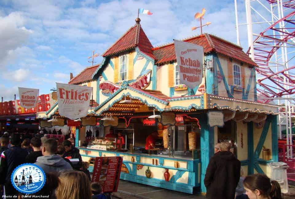 ジェットコースターなどの絶叫系アトラクションから、幼児も楽しめるボートやカモ釣り(フランスは、金魚ではなく、プラスチックのカモを釣り景品をもらうのが幼児の定番の遊びです)などがあり、飲食系では、ハンバーガー、ケバブ、パニーニーなどの温かいファーストフードやレストラン(このイベントでは、店頭で直接焼いている、豚の丸焼きが有名です)お菓子系の露店(リンゴ飴、ドーナツ、チュロス、ギモーブ)もたくさんありました。